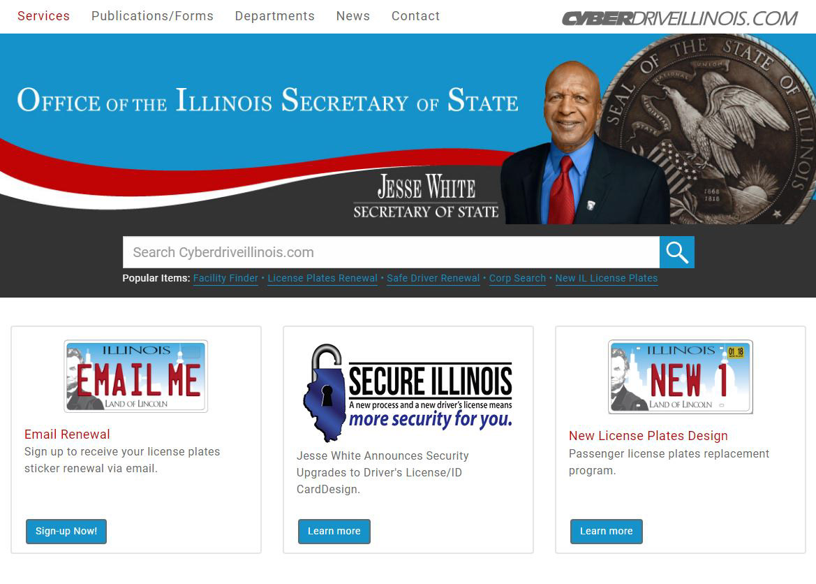 For this project, I placed the spotlight on the official website of the Illinois Secretary of State, which maintains information regarding library archives, state regulations, government structure, and driving services. This website hosts a separate webpage (cyberdriveillinois.com) to provide information about licenses and registration, which does not allow visitors to easily find information about how to acquire a new ID or license. To remedy this, I strove to find alternative ways to organize the website for easy navigation.