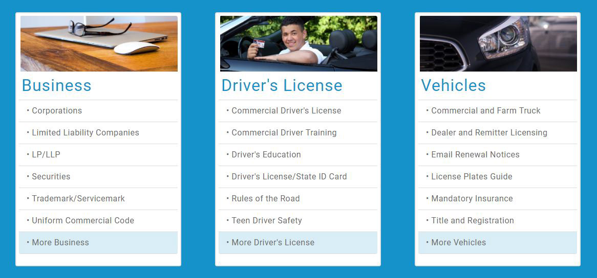 For the tree tests, the participants were instructed to complete three tasks: (1) find the state ID application, (2) find driver’s license practice exams, and (3) find the page to update residential information. After the first round, some of the high-level categories were renamed, followed by another round of tree testing.
